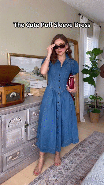 Bold sleeves, bold confidence. The bubble-sleeve denim dress nails that retro-meets-modern vibe – cinched waist, flirty hem, 100% tummy-smoothing magic.